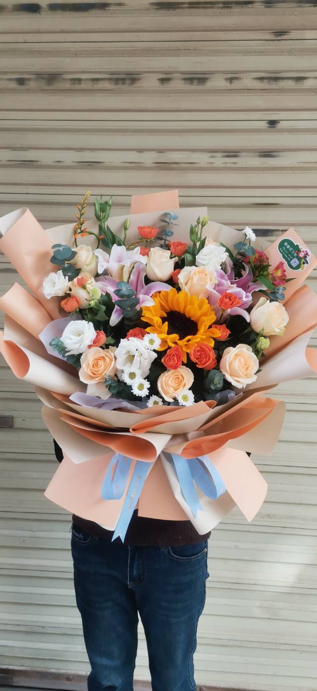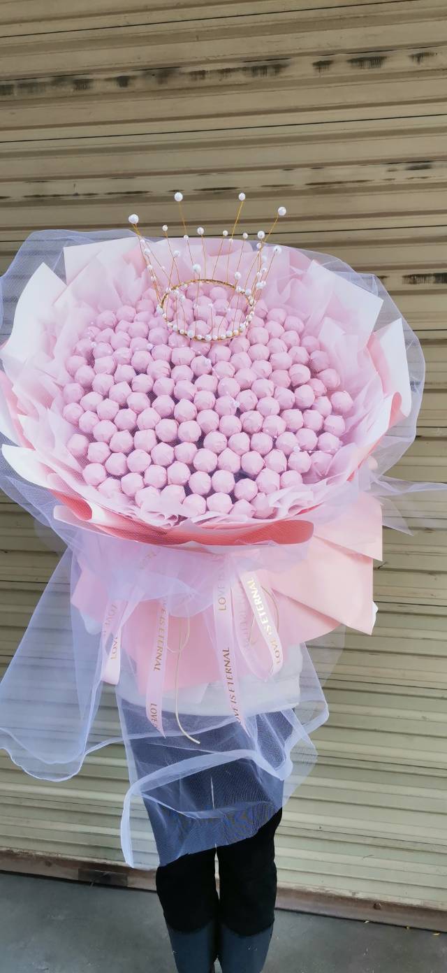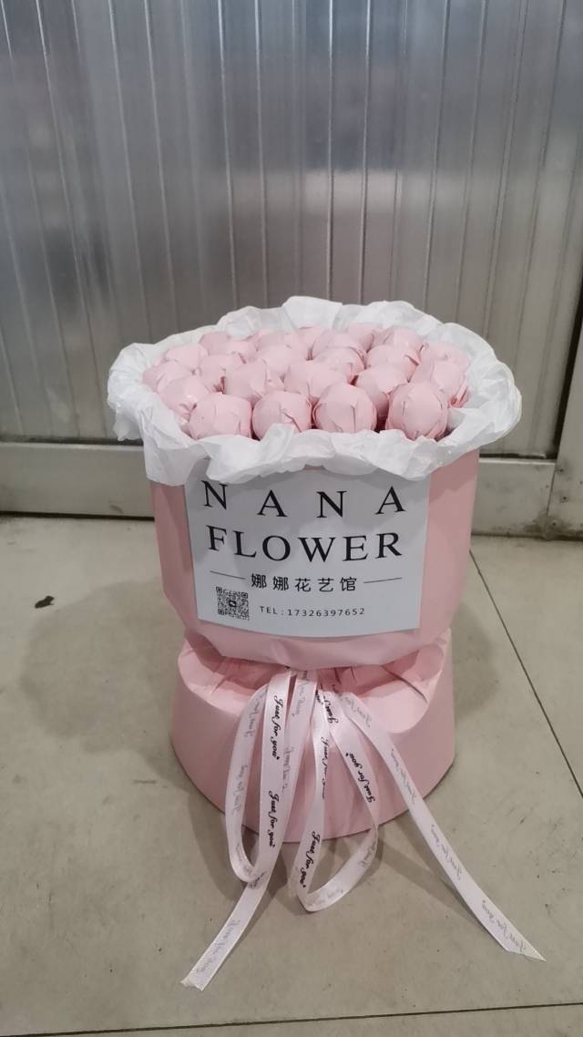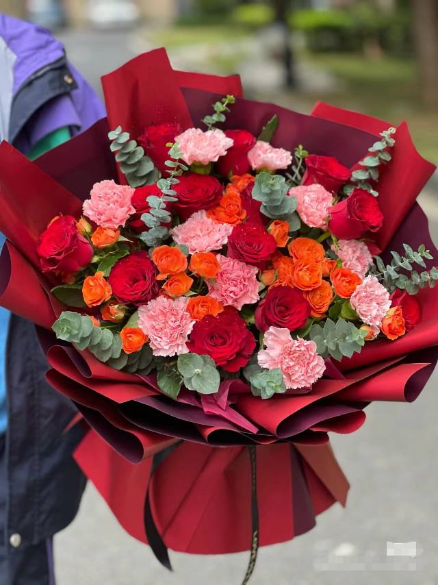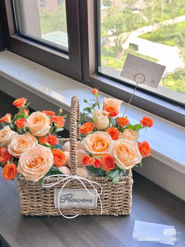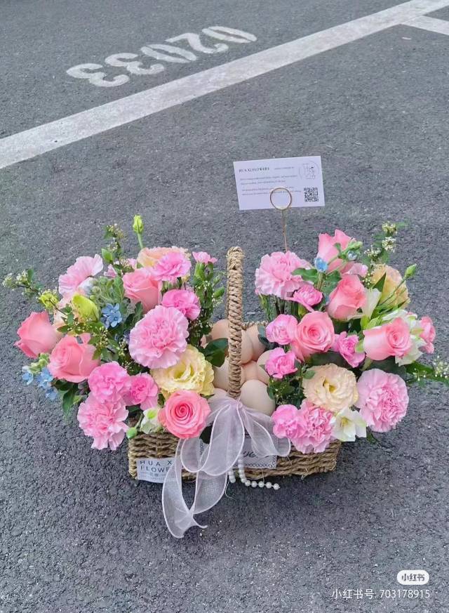粉玫瑰加康乃馨混搭手提鸡蛋花篮