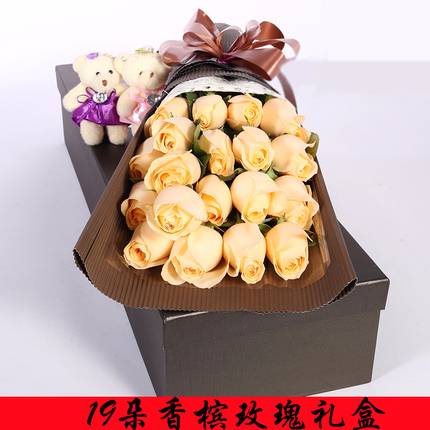 19朵香槟玫瑰礼盒两小熊如图 |