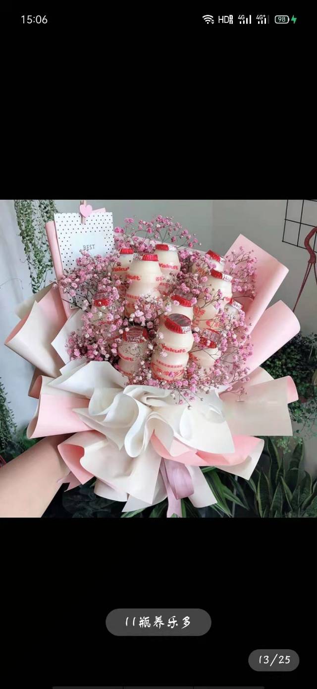 11支旺仔牛奶配粉色满天星花束, |
