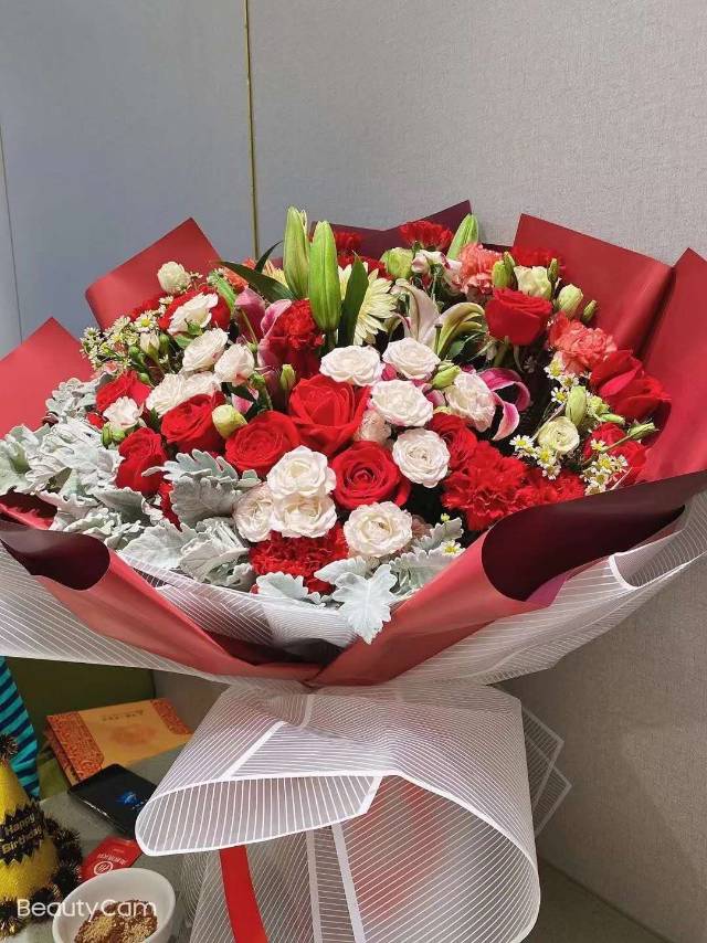 夜上海论坛23支红玫瑰+10支红色康乃馨2支多头百合花束,如图包 |