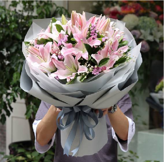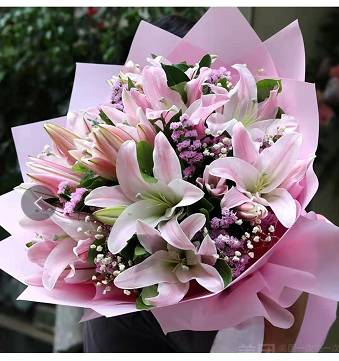 6支多头粉百合勿忘我满天星鲜花(19朵以上)如图制作 |