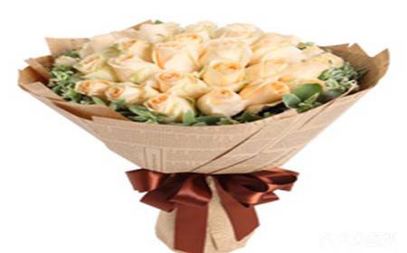 33朵香槟玫瑰花束。