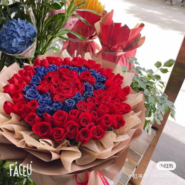 夜上海论坛中间27朵蓝色妖姬心形 外围52只红玫瑰花束如图一 |