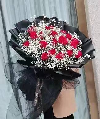 夜上海论坛19朵红玫满天星加皇冠加灯