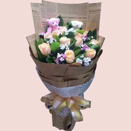 11朵香槟两小熊如图包装