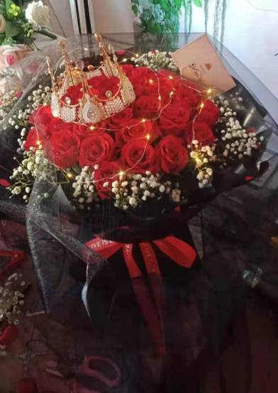 夜上海论坛33支红玫瑰黑纱花束+皇冠 如图 |