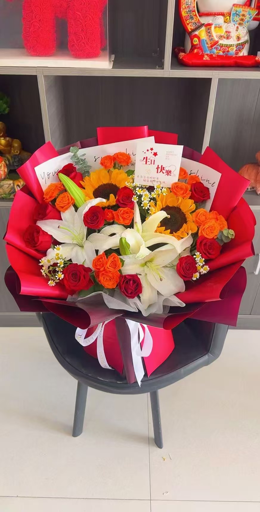 夜上海论坛19朵红玫瑰2支多头白百合花束 数量:1 |
