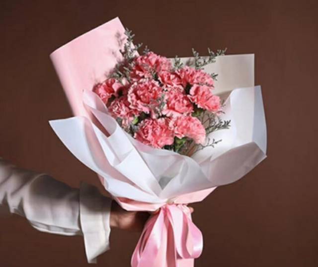 11朵粉色康乃馨加白星鲜花束,如图包 |