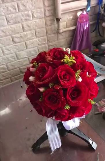 夜上海论坛19朵红玫瑰新娘手捧花 圆形韩式花束 如图 |