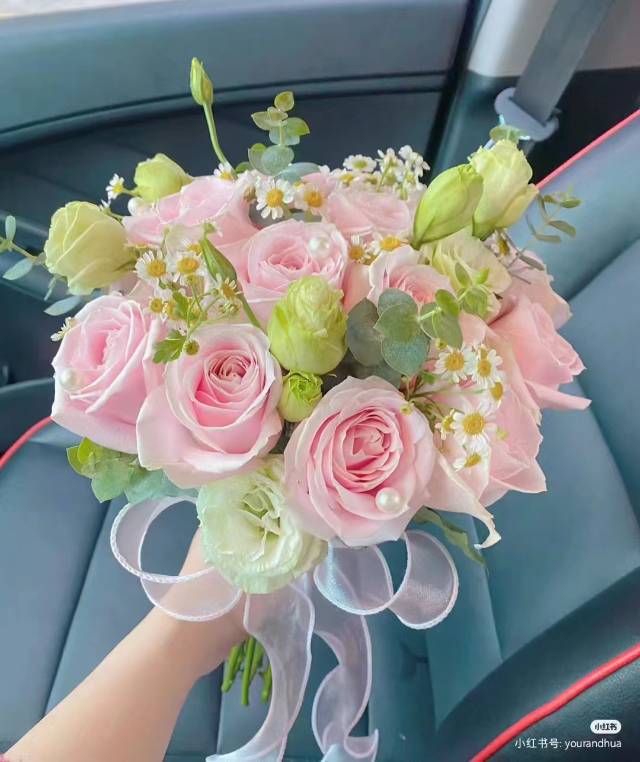 25朵粉雪山配洋桔梗手捧花,如图 |