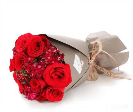夜上海论坛11朵粉玫加11朵红康加2支白百合鲜花束,如图包 |