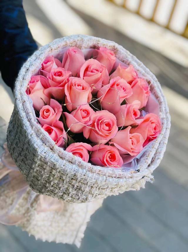 夜上海论坛19朵粉玫瑰加串珠小香风鲜花束 |