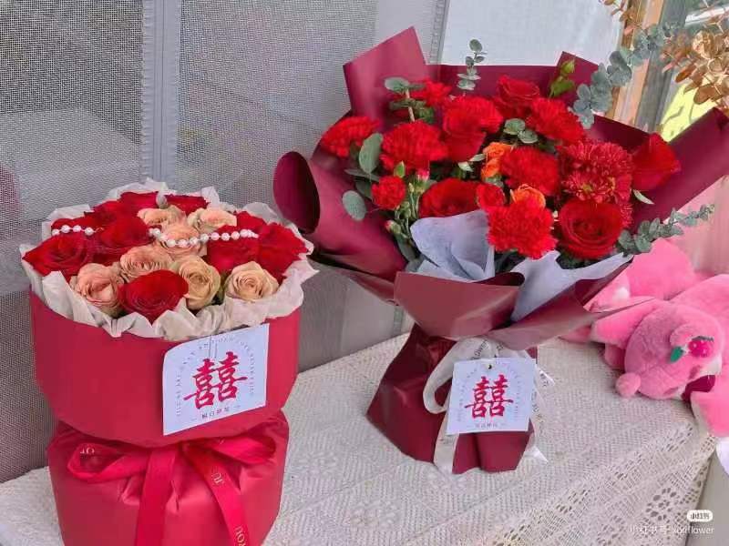 99朵红玫加珍珠加纱鲜花束,如图包 |
