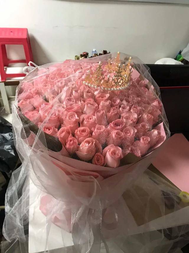 11朵粉色康乃馨花束,花材新鲜,包装大气,有卡片,如图 |