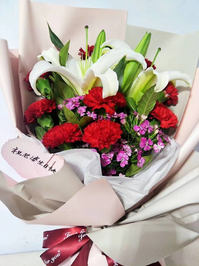 夜上海论坛7支白玫瑰+2支粉玫瑰花束,如图 |
