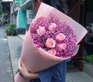 6朵粉玫瑰粉色满天星混搭花束,如图 |