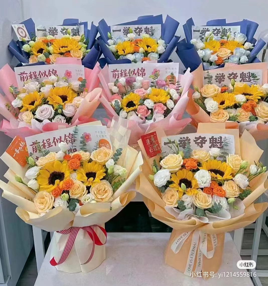 13朵香槟2朵向日葵绿色洋桔梗混搭花束 数量:1 |