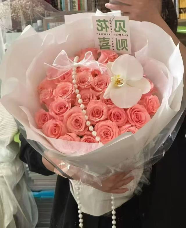夜上海论坛35朵粉玫瑰1朵蝴蝶兰花束,按图做 |