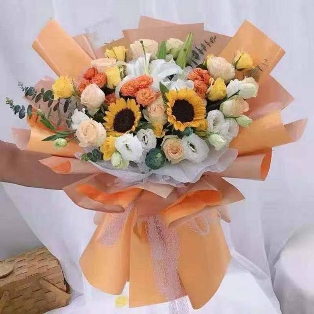 11支粉玫瑰2支向日葵时尚花束,如图包 |