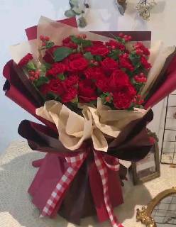 夜上海论坛33朵红康红玫瑰混搭花束(带红豆) |