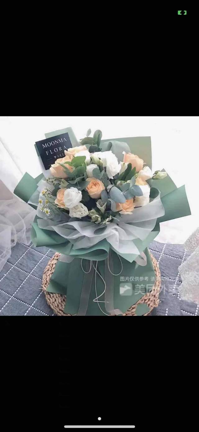 18朵香槟玫加优加利满天星花束.用图色的包装 |