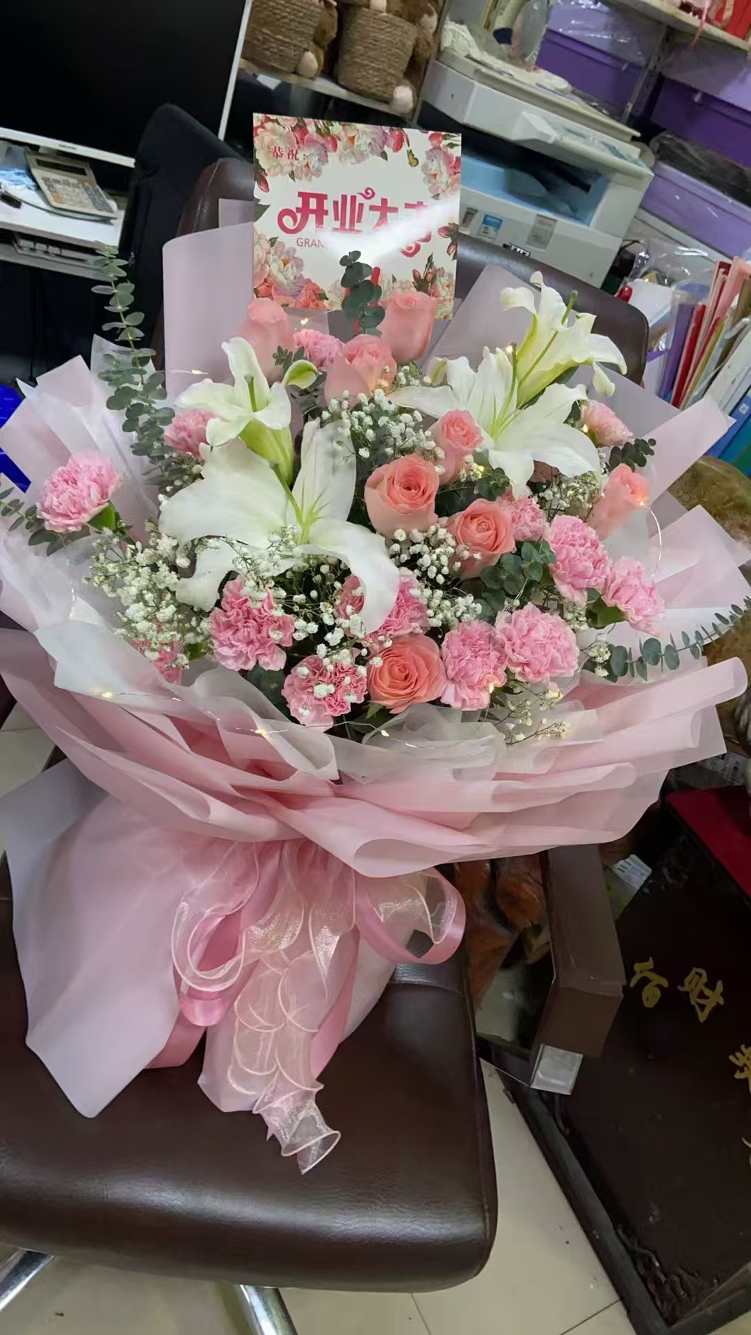 夜上海论坛11朵粉康乃馨花束混搭向日葵 |