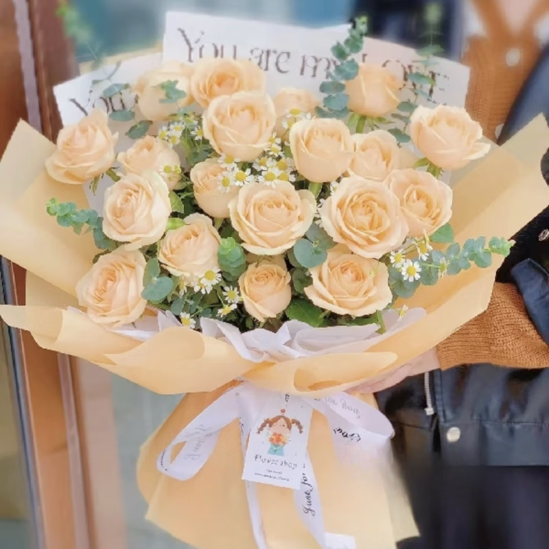 11支香槟2支多头白百合配满天星花束 ,如图 |