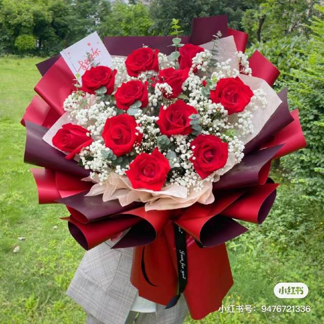 11支红玫瑰配满天星花束,如图 |