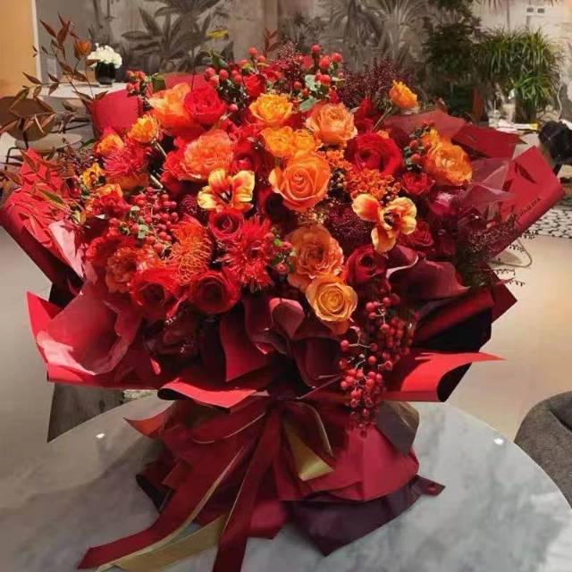 夜上海论坛33支红玫瑰红康乃馨混搭花束,以红色为主,按图片款式搭配 |