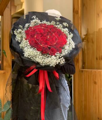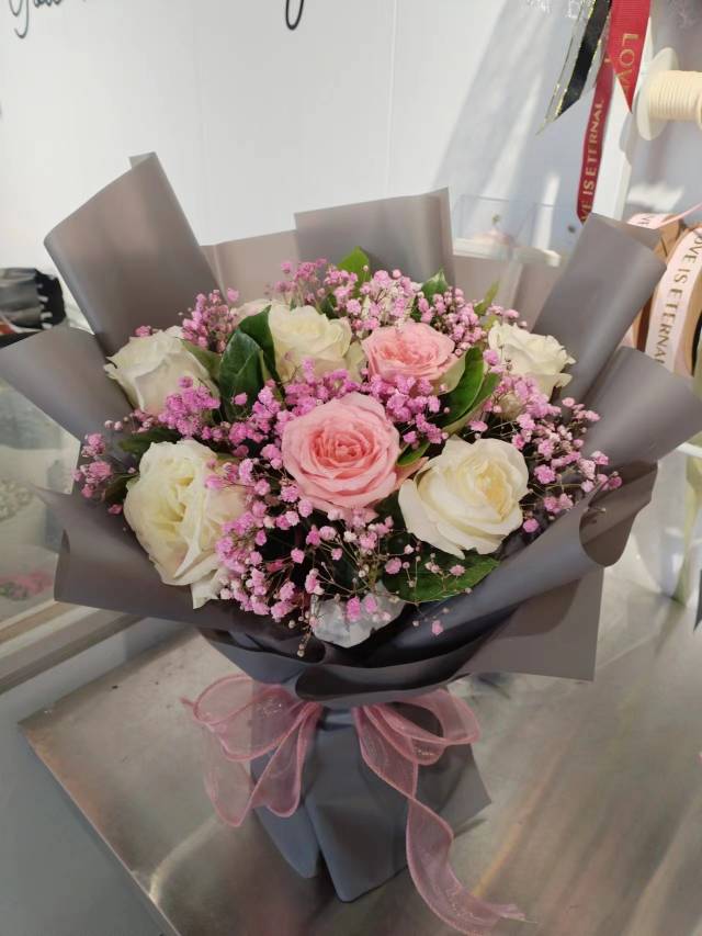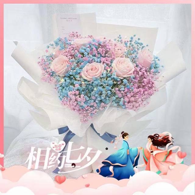 夜上海论坛11朵粉玫瑰混搭粉色蓝色满天星花束 按图 |