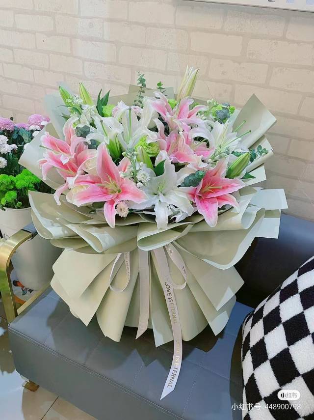 33支粉康乃馨+2支白百合花束,款式如图 |