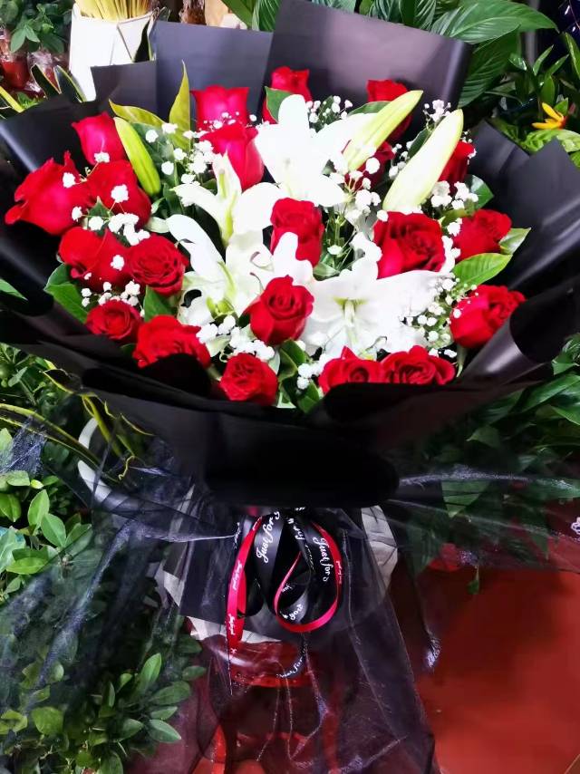 夜上海论坛25朵红玫瑰 混搭4只多头百合花束如图 |