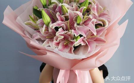 夜上海论坛8支多头粉色百合(22朵以上)花束,花材新鲜,包装大气,有卡片,如图 |