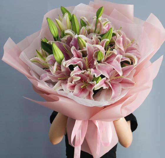 8支多头粉百合花束(22朵以上),如图 |