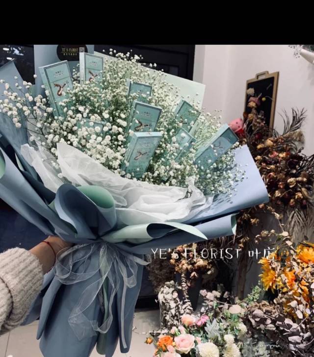 夜上海论坛10包煊赫门+蓝色满天星花束,如图包装,有卡片,8月7日9点半按时送达 |