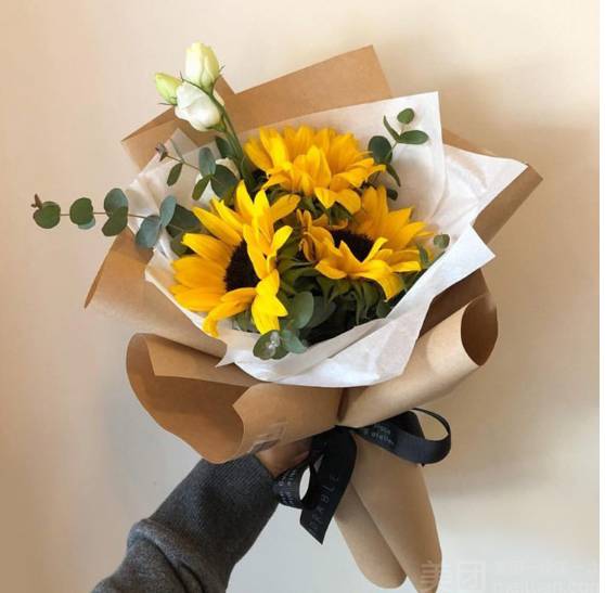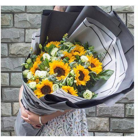 夜上海论坛10朵向日葵配洋桔梗花束,如图包 |
