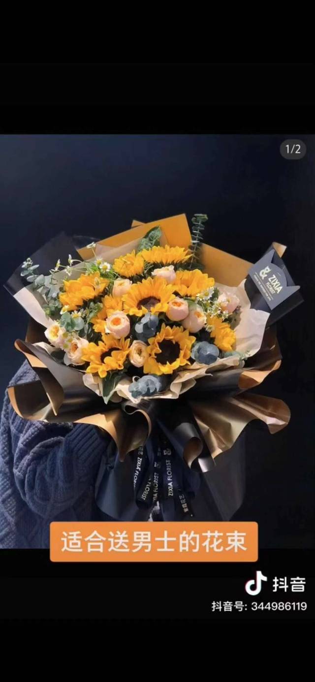 夜上海论坛3朵向日葵5朵香槟玫瑰混搭花束 |