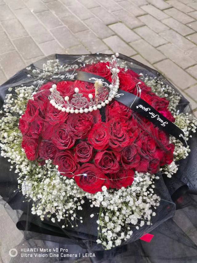 99朵红玫瑰花束如图黑纱 皇冠灯条 |