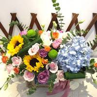 夜上海论坛高级藤编手提花篮(玫瑰+绣球 +向日 葵+配花),清新大气好看,现在做好马上 |