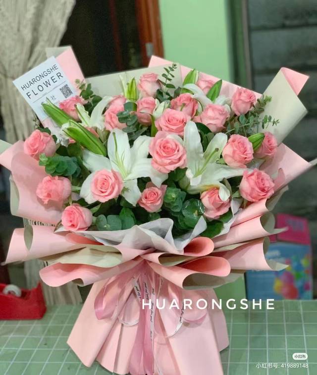 19朵粉玫加3支多头百合花束如图 |