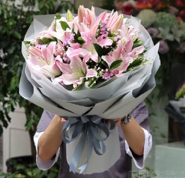 16朵粉百合满天星花束 按图 |