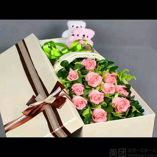11朵粉玫瑰2小熊礼盒 如图包装 |