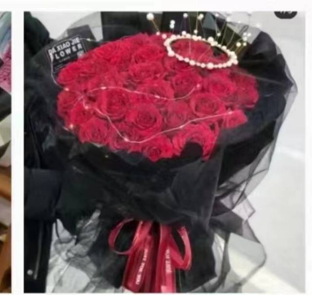 夜上海论坛33支精品红玫瑰花束黑纱款加皇冠加灯+2个苹果手提袋 |