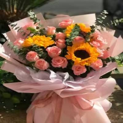 夜上海论坛19粉玫瑰3向日葵混搭花束如图 |