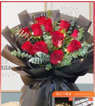 11朵红玫鲜花束。如图包 |