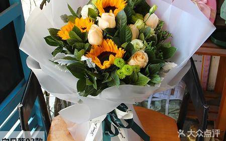 5朵香槟玫瑰+3朵向日葵花束 |