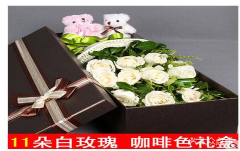 11支白玫瑰鲜花两小熊礼盒如图 |