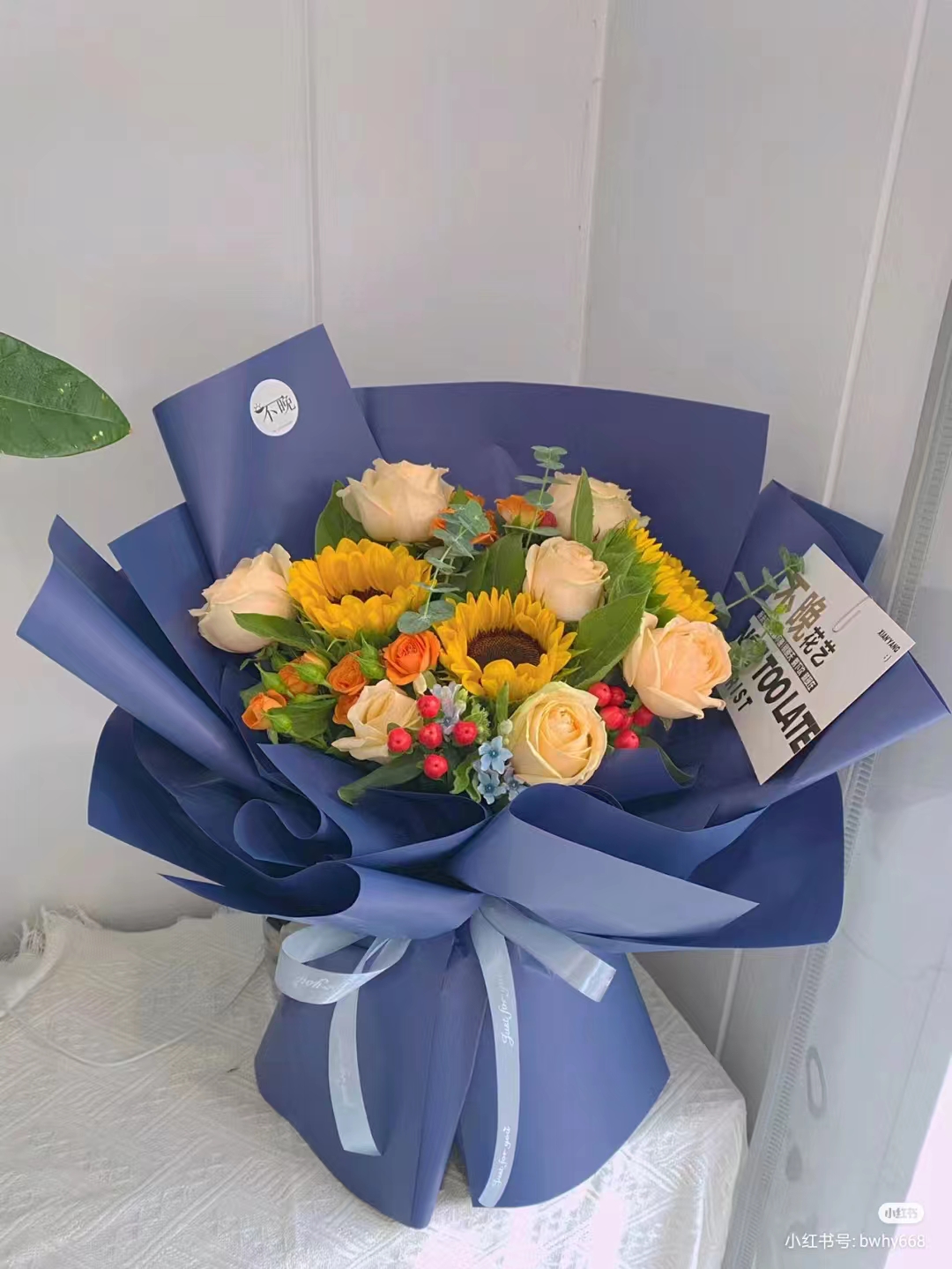 夜上海论坛9朵香槟3向日葵桔梗橙色泡泡混搭花束 按图 |