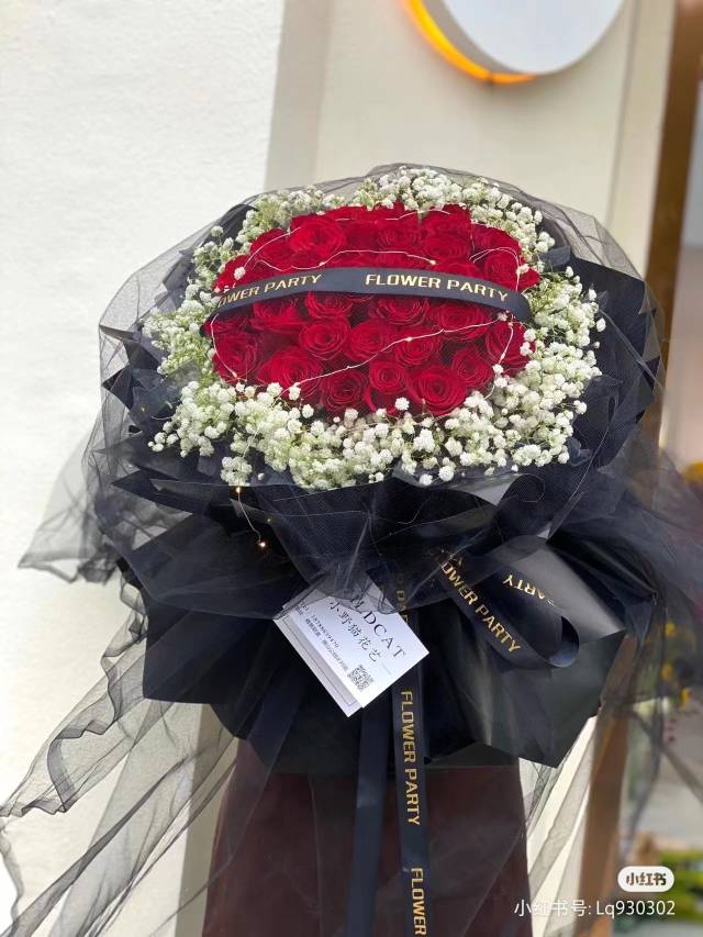 33朵红玫加纱加灯鲜花束,如图款式包 |