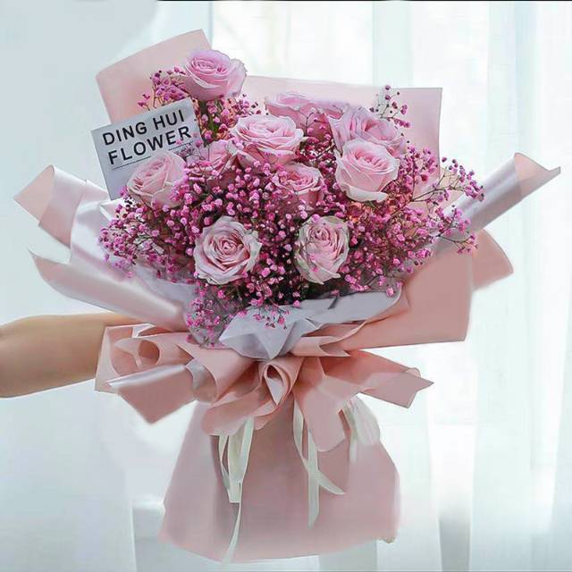 夜上海论坛17朵香槟粉玫混搭手捧花 |